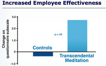 Uno studio sui dirigenti e lavoratori di una casa automobilistica ha dimostrato che dopo tre mesi di pratica regolare della Meditazione Trascendentale, i dipendenti hanno mostrato un miglioramento nel lavoro e nelle relazioni personali rispetto ad un gruppo di controllo nella stessa casa automobilistica.